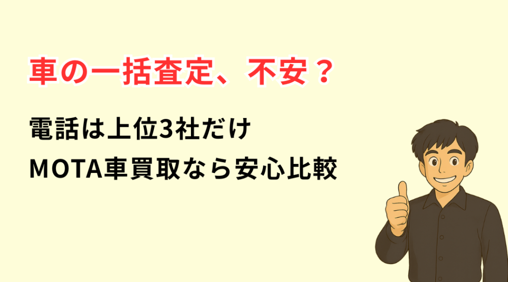 車の一括査定が不安な人へ|電話は3社だけのMOTA車買取