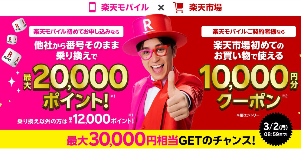 楽天モバイルでは、他社からの乗り換え(MNP)で、