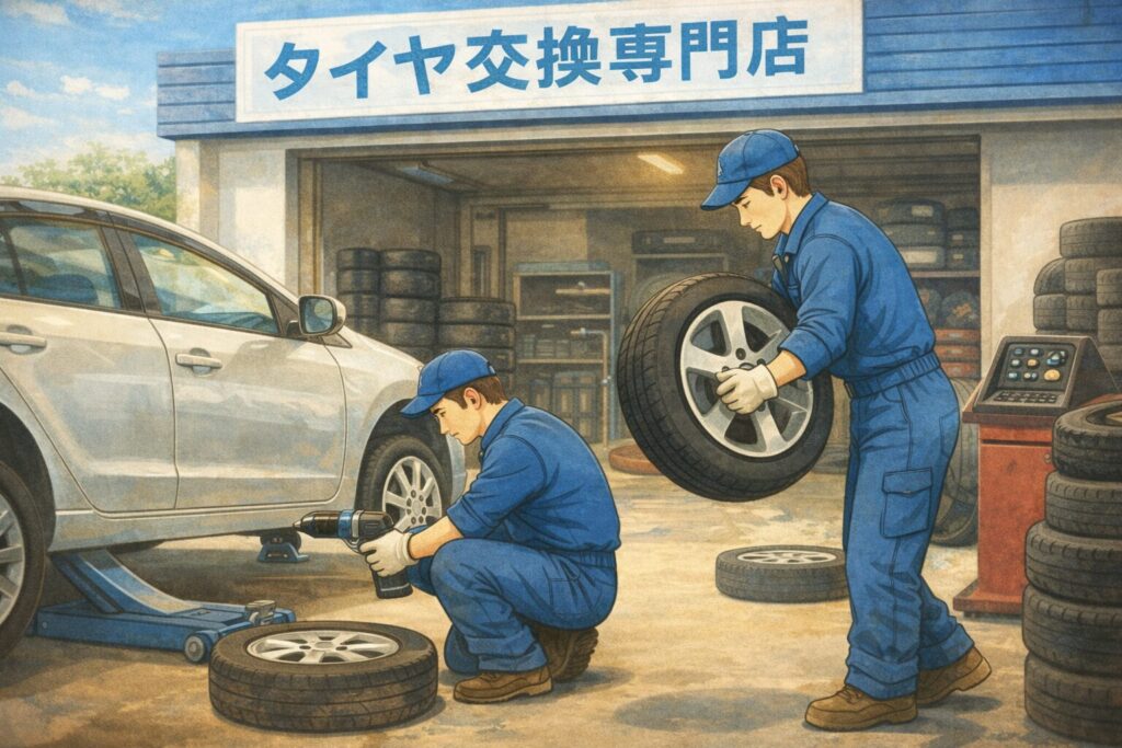 - 交換場所はタイヤ交換専門店を選ぶ
